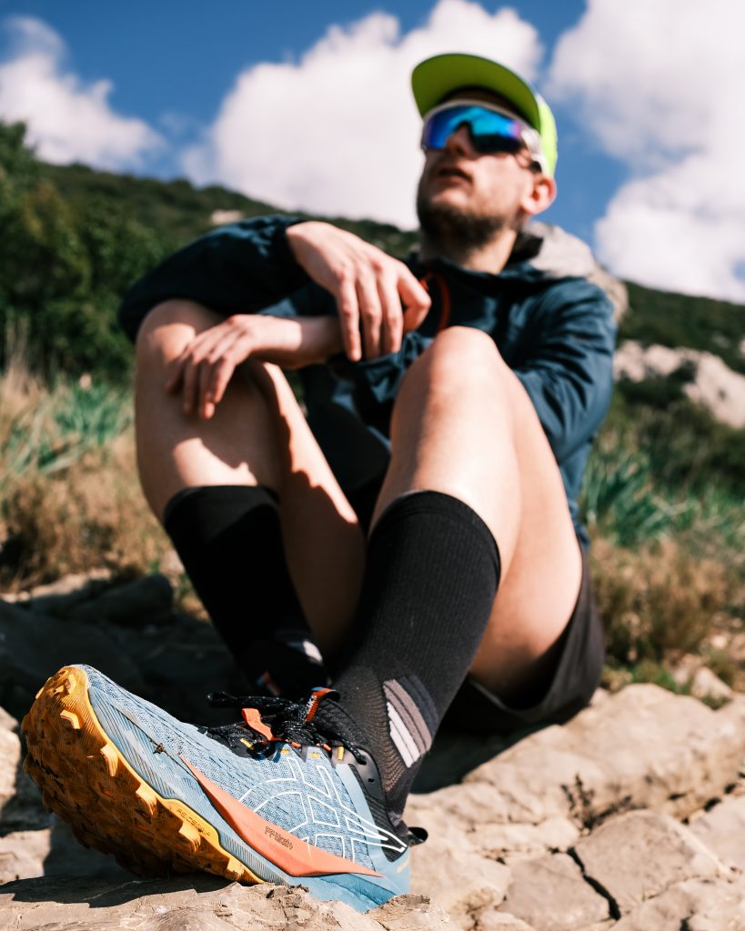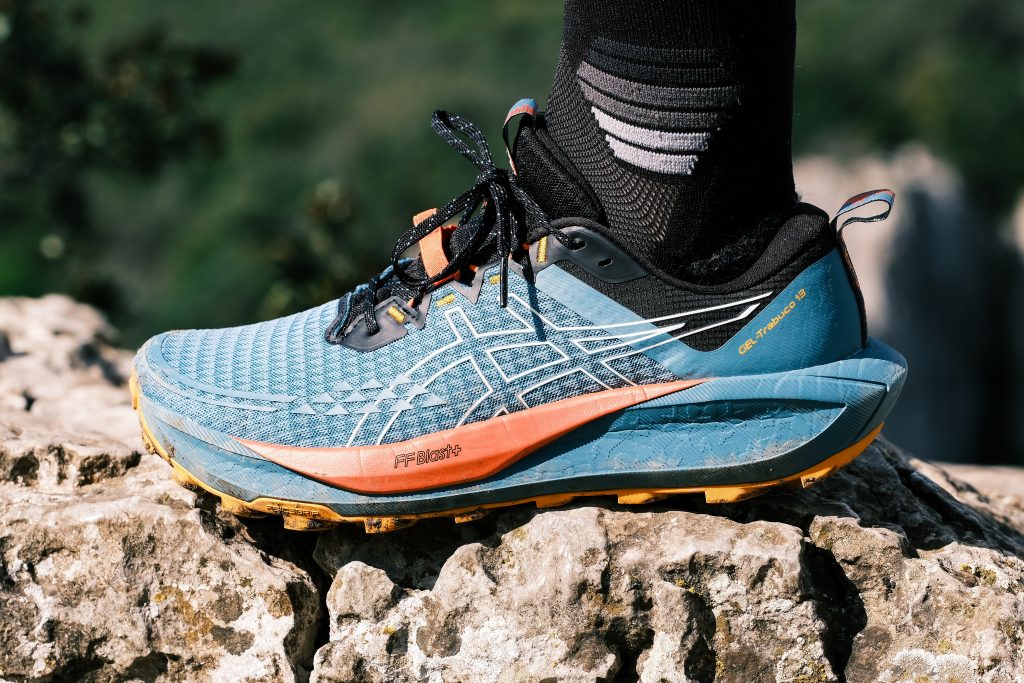 Agréable à porter, bien fittée, elle assure une bonne stabilité malgrè son stack élevè. C’est pour moi un vrai atout qui procure d’excellentes sensations sur terrains roulants. L’accroche est très correcte, mais pour les terrains vraiment techniques, la GEL-TRABUCO 13 reste une meilleure option.