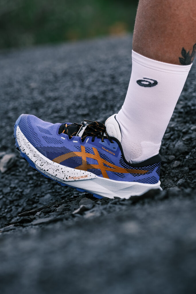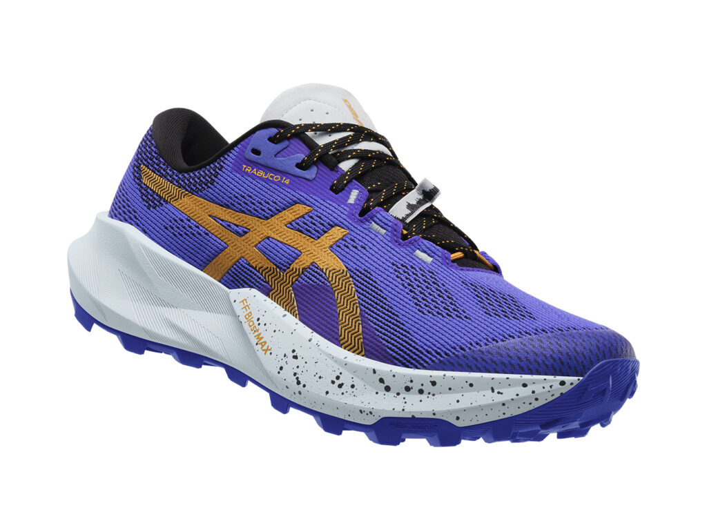 TRABUCO 14 / Pensée sur chemins rocailleux et singles techniques, même par temps humide. La mousse FF BLAST MAX offre un amorti réactif et énergique, tandis que la semelle ASICSGRIP™ assure une accroche fiable. Comparée à la Trabuco 13, elle gagne en légéreté, bénéficie d’un amorti plus dynamique, d’un fit amélioré et d’une plaque pare-pierres plus flexible, pour un équilibre optimal entre confort, protection et réactivité.
