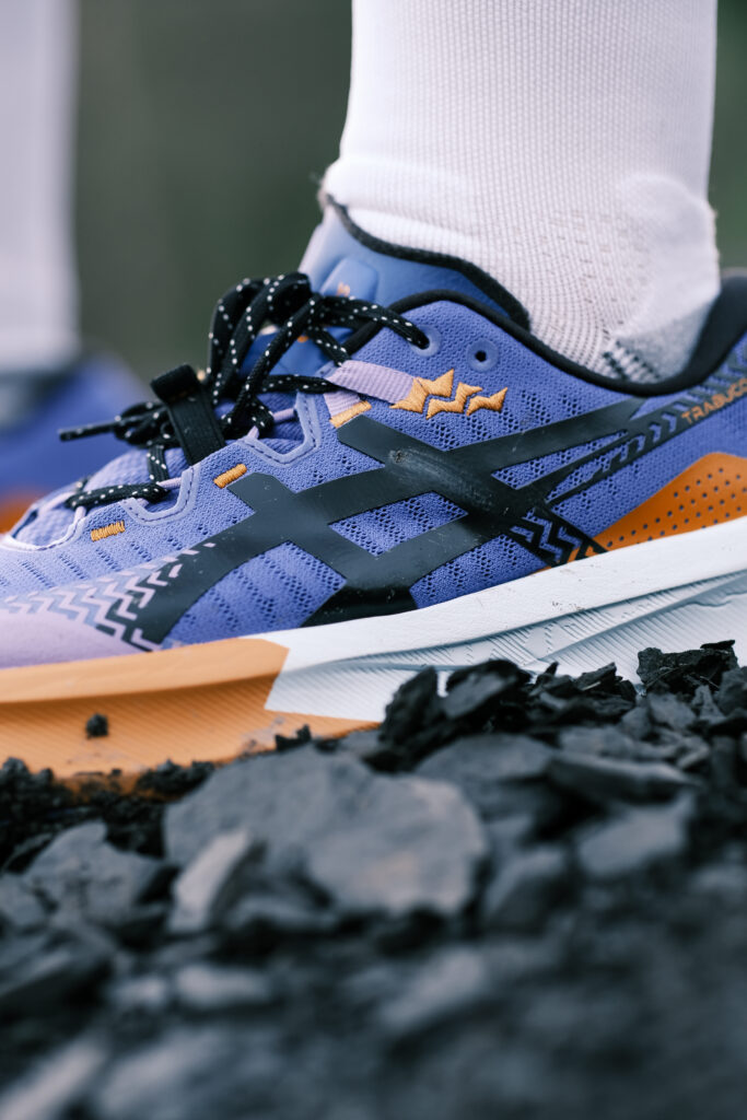 TRABUCO MAX 5 / Comme pour la Trabuco 14, le grip reste sûr grâce à la gomme ASICSGRIP™ et aux crampons multidirectionnels. Même sur de longues distances et terrains variés, la stabilité est maximale et l’adhérence optimale pour avancer sereinement sur sols secs comme humides.