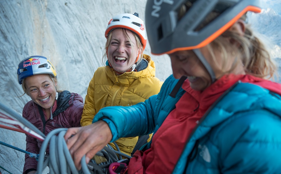 Dennoch mussten sie tagelang mit dem scharfkantigen Gestein (so scharf, dass Brette Harringtons Finger bluteten) und dem launischen Wetter kämpfen. "Es gab unglaubliche Stürme, als wir vor Ort waren", erklärt Sasha DiGiulian. "Ein riesiger Hurrikan schlug vor der portugiesischen Küste auf und wir bekamen die Folgen hier zu spüren. An manchen Tagen war es neblig, an anderen regnete es und es gab Gewitter...". Nichts, was die drei Bergsteigerinnen jedoch davon abhalten konnte, den Gipfel des Rayu zu erreichen.