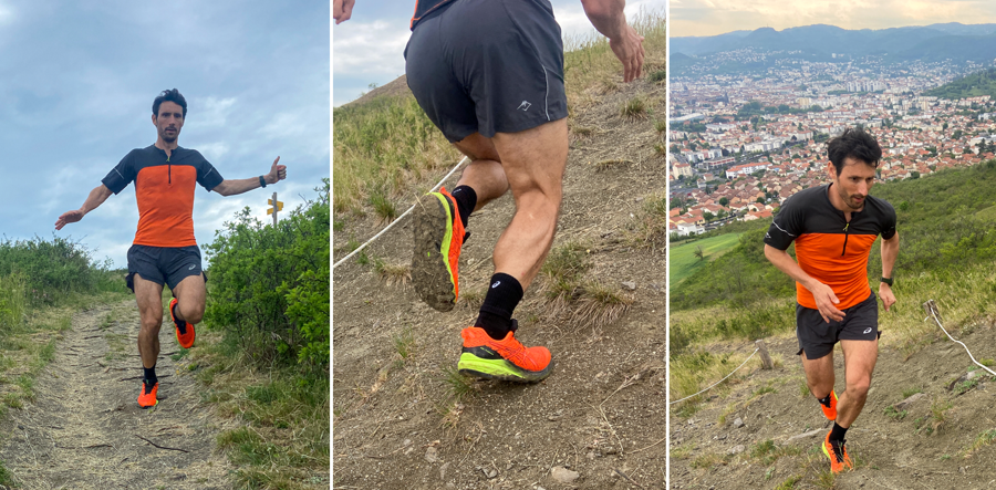 T.L. They are clearly dynamic and offer a good lightness for such comfortable shoes. The foam allows a certain comfort at the level of the foot pose. And we also have a good protection of the forefoot. The mesh is more durable than the 9 and the grip system is very good. I was familiar with the Fujitrabuco Sky which also had the Asics Grip and finally, I was quite pleasantly surprised by the TRABUCO 10's lugs that do not interfere with the proper functioning of the foot. Sometimes, we have shoes that grip a lot but on surfaces a little less soft. In this case, the studs can almost be a hindrance, as if you were riding on mountain bike tires. And yet, with the TRABUCO 10, we have a shoe that is not blocking on stable portions of road while having an excellent grip on wet surfaces and slabs.