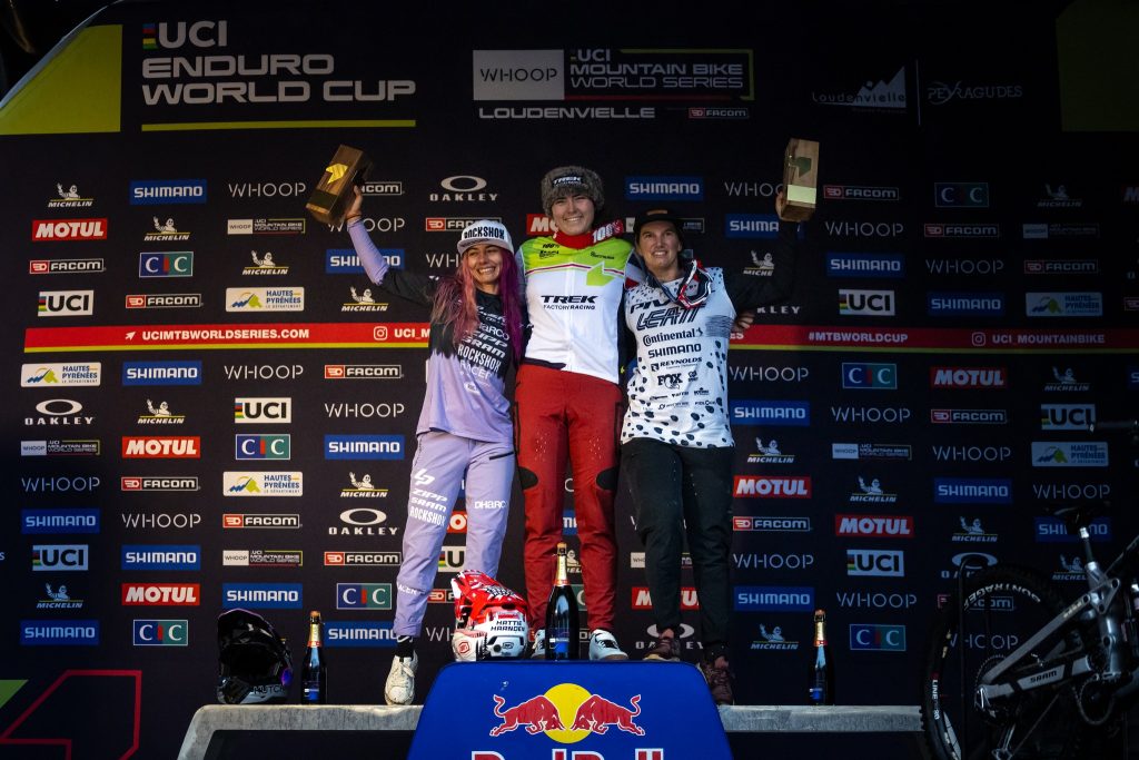 We knew it before the last stage of the year: whoever finished ahead of the other would be crowned world champion. The duel between England's Harriet Harnden and France's Isabeau Courdurier at the Enduro World Cup In the end, it was Morgane Charre who came out on top, winning the Loudenvielle event in difficult conditions. On the soggy Pyrenean soil, while the two favourites were expected to be at the forefront of the battle for overall victory, it was Morgane Charre who came out on top at the end of the race, ahead of Mélanie Pugin and Ella Conolly.