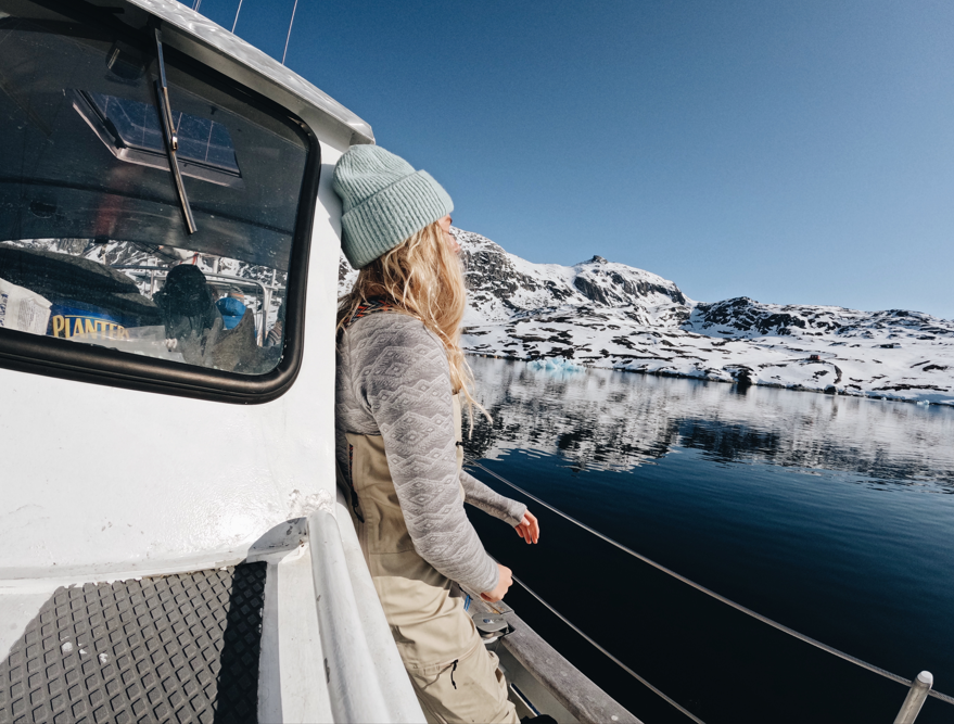 Faceva freddo in tutti i luoghi in cui abbiamo girato, soprattutto in Groenlandia e in Svezia, dove può essere molto ventoso e gelido. È molto importante avere uno strato di base caldo e calze di lana merino. Abbiamo trascorso molto tempo a filmare su barche a vela e in piccoli rifugi di montagna. Anche il fatto che gli strati di base non rilasciano odori è stato un vantaggio per questo tipo di avventura. La lana merino è un materiale davvero magico.