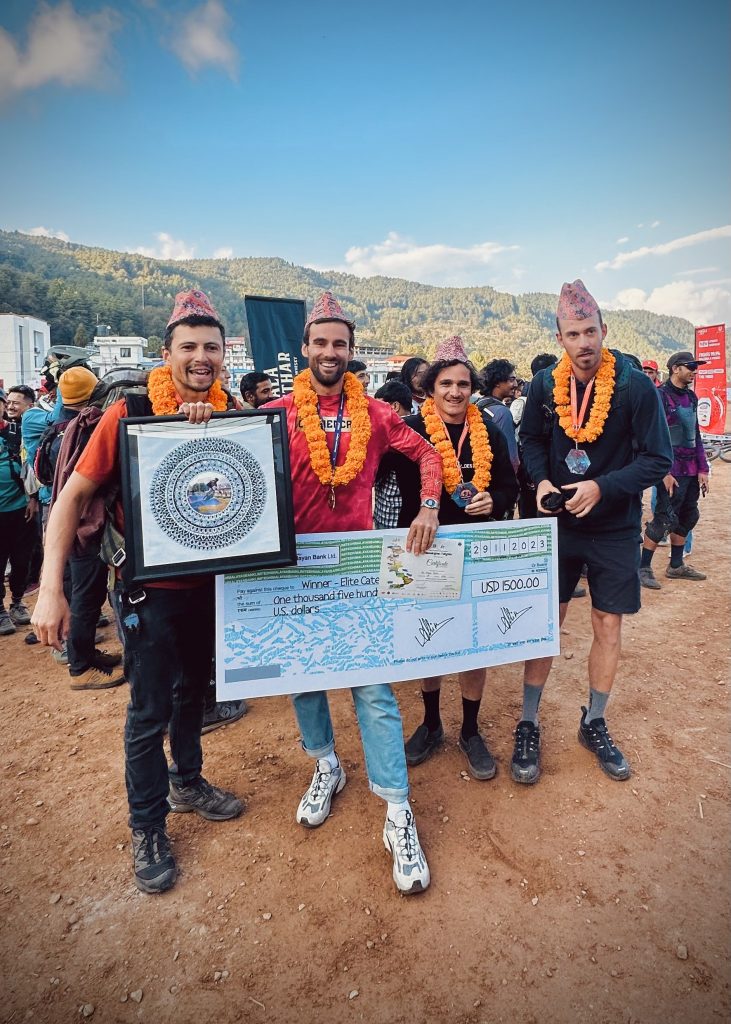 C’est à quelques mètres du temple Kalinchowk Bhagwati à 3 767 mètres d’altitude, qu’est donné le départ de cette course. L’arrivée se trouvant sur la rivière Tamakoshi à 859 mètres d’altitude, soit un dénivelé plus important que ce que propose par exemple la célèbre Megavalanche de L’Alpe D’Huez. Vainqueur de cette course avec plus de deux minutes d’avance sur son plus proche poursuivant le local Rajesh Magar, Kilian a donné son prize money (1500 dollars) à Arun, un enfant népalais qu’il a rencontré à Kathmandu, pour payer les frais de son école (en plus de lui avoir donné un vélo). Outre sa participation à cette épreuve, Kilian a également profité de sa présence sur place pour aider la scène VTT locale avec le soutien de ses sponsors dont Private Sport Shop. Deux vélos ont ainsi été donnés aux riders népalais.