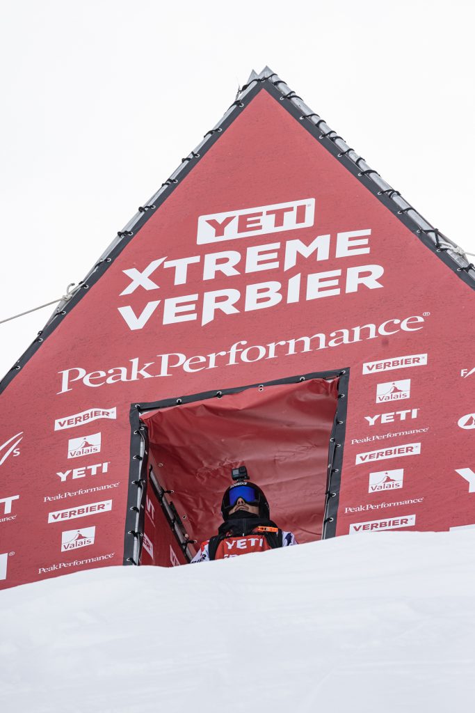 Ce Bec des Rosses, c’est effectivement vraiment quelque chose. Il faut savoir que deux jours avant la compétition, tous les skieurs et snowboardeurs ont été héliportés au sommet. Sur les 11 skieurs engagés sur cette finale, aucun n’avait déjà fait la compétition en s’élançant depuis le sommet. Les organisateurs voulaient être certains que l’on aurait le temps de faire les meilleurs repérages possibles sur cette face. En haut, la première sensation, c’est le vide car c’est tellement raide. Clairement, ça fait peur. Sur les autres faces, c’est davantage ta ligne et tes tricks qui créent le risque. Ici, l’erreur n’est pas permise, avec le dénivelé qui est dingue. L’objectif, c’est surtout d’éviter une chute que tu ne pourrais pas arrêter avec l’inertie tellement c’est pentu.