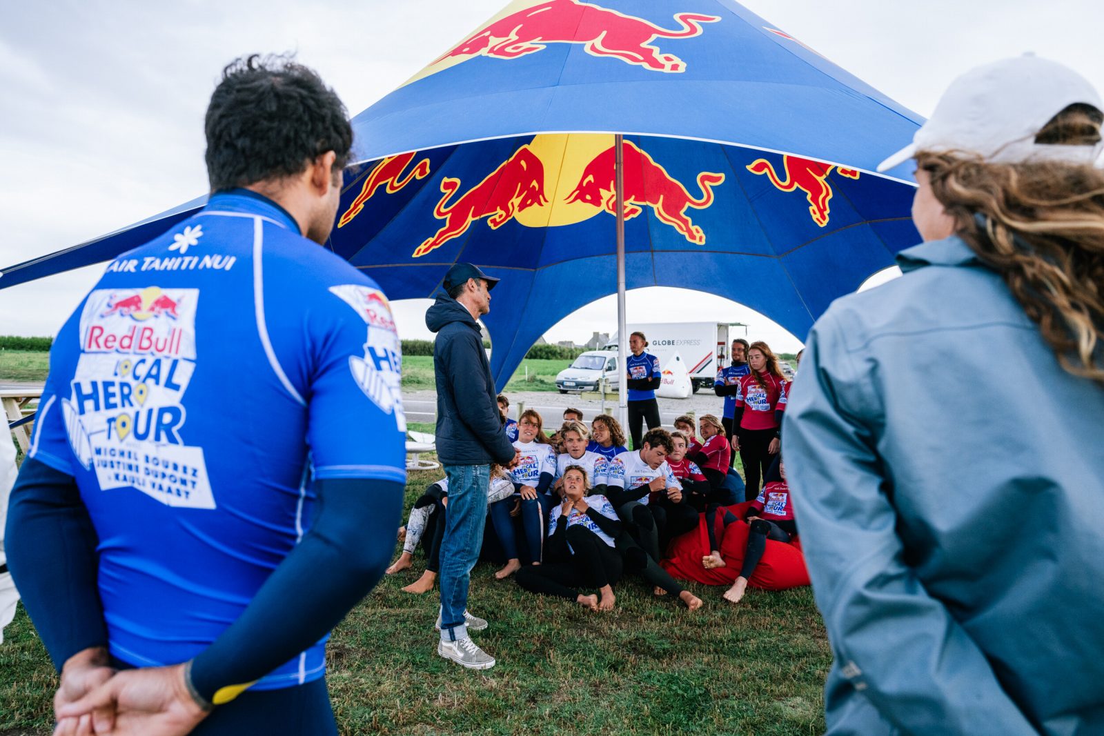 48 jeunes Bretons de 16 à 25 ans se sont réunis sur les côtes bretonnes lors du 3e Red Bull Local Hero Tour, sous l’œil attentif de trois légendes du surf : Justine Dupont, Michel Bourez et Kauli Vaast.