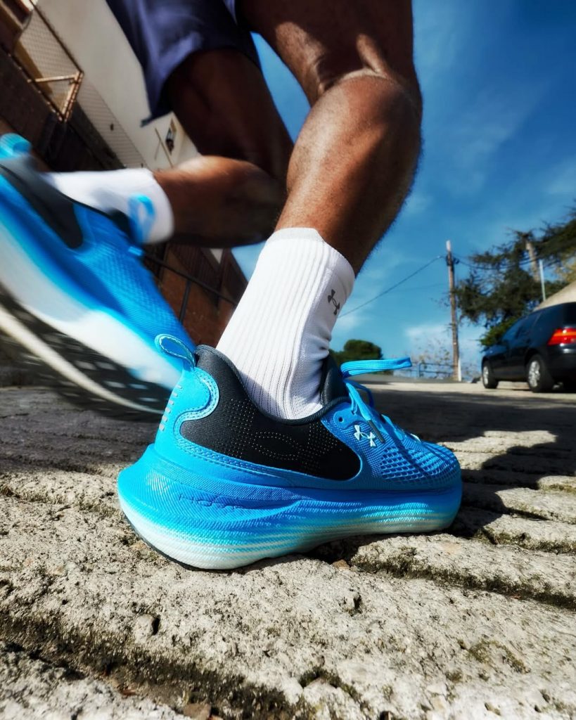Aussitôt enfilé, je n’ai pas douté une seule seconde du confort qu’elle allait m’apporter à l’effort. La semelle intermédiaire offre un maintien rassurant tout en proposant un amorti vraiment agréable. On sent que chaque foulée est amortie sans pour autant perdre trop en réactivité.