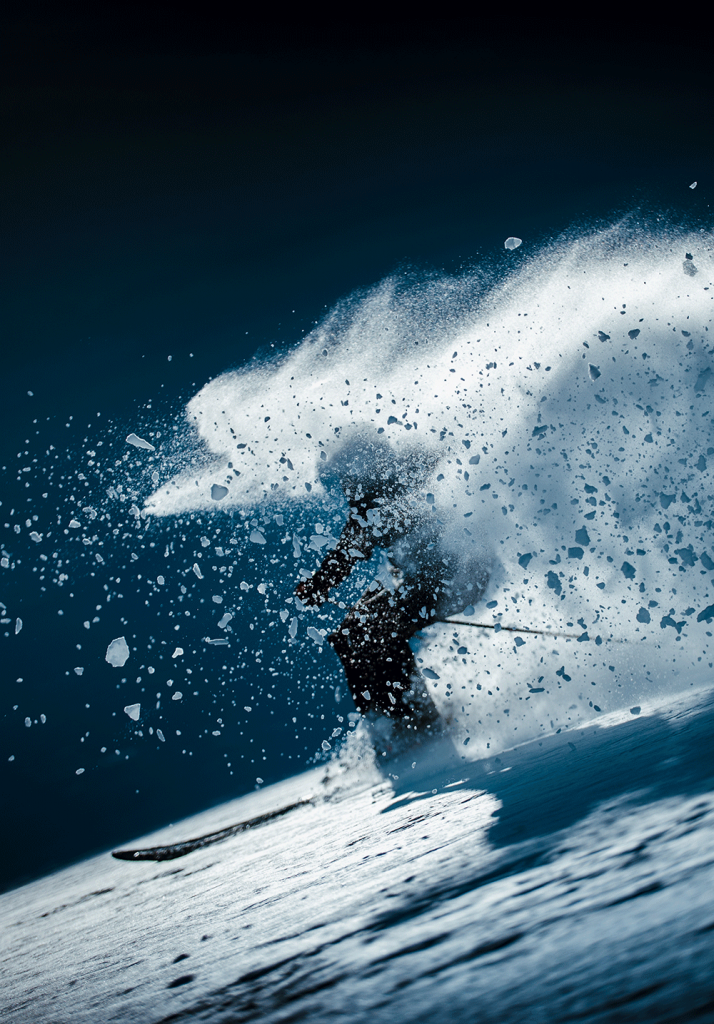 En ski alpin, j’ai choisi de tourner cette partie de nuit à Saint-Gervais car c’est ici que j’ai tout appris et on a tourné de nuit pour apporter une originalité supplémentaire aux images.
